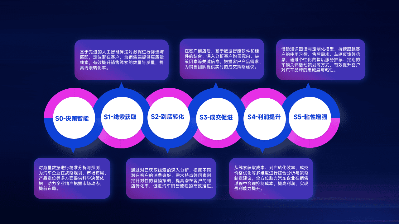 通过拓宽潜在客户来源、、优化线索分配并提高到店转化率,,以增强销售效率。。。同时,,利用线索数据不断优化分析模型,,,有效提升转化率,,,扩大营销影响力。。。